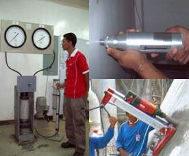 Using a 150-ton compression machine, compressive strength are determined for concrete cylinders, concrete core specimen, pavement blocks, mortar cubes and concrete hollow blocks. Flexural strength of concrete beams are also tested using the UTM or the compression machine. 2” to 6” coring of slabs and pavement are conducted for depth determination as well as for compressive strength capacity. The Schmidt hammer rebound test is conducted for uniformity and continuity.