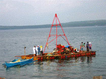 Offshore boring are necessary for the design of ports, jetties, wharfs, bridges and other off-shore facilities. Drilling and field testing is done on board a 20-ton floating pontoon efficiently assembled on site.
